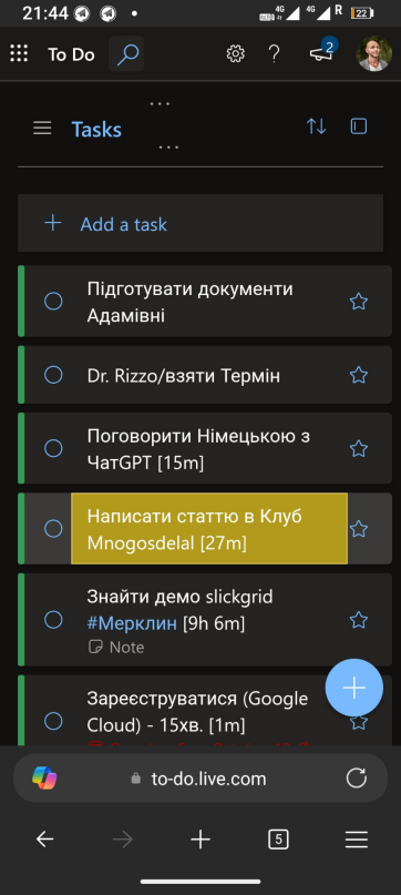 в "заметках" к задаче у меня ссылка на ресурс или детальная информация. В последнее время там находится ссылка на конкретный связаный с задачей чат chatGPT.