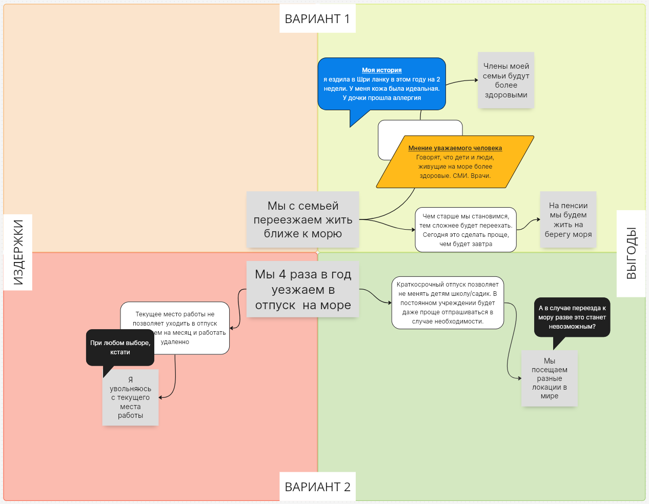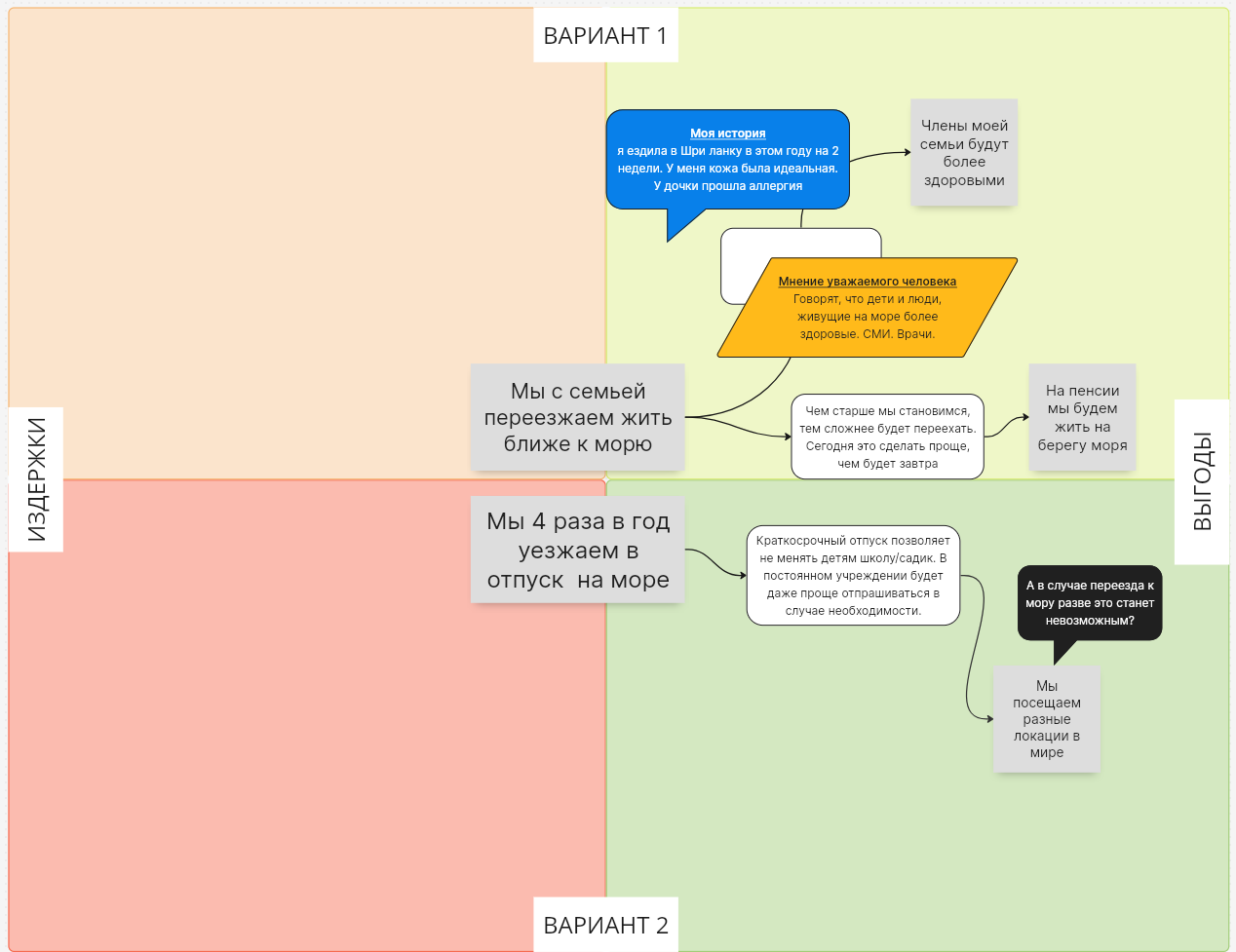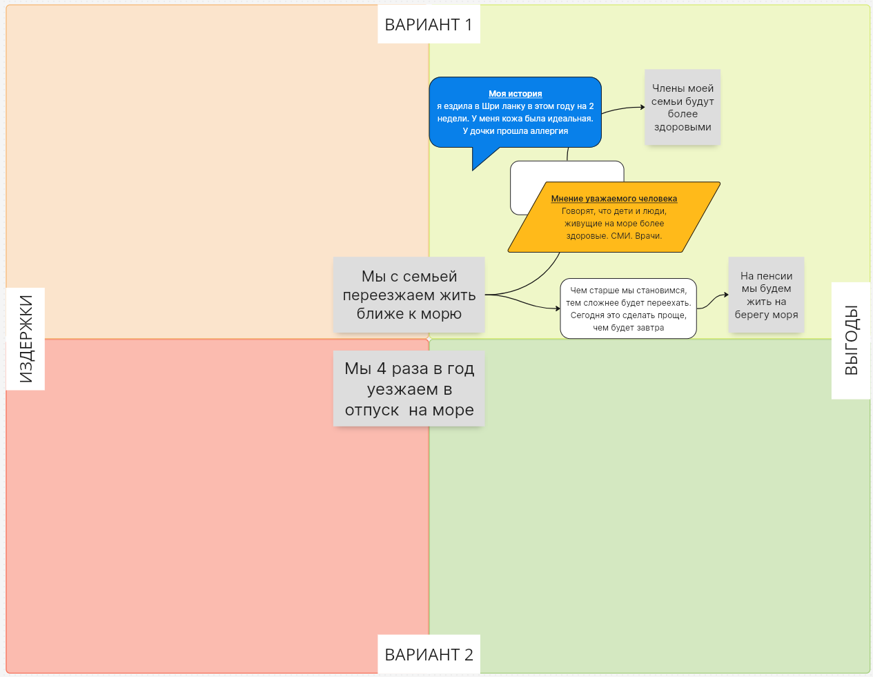 — Да, теперь я вижу. Пока было «потерять ценное», то дилемма воспринималась одним образом, но как только вместо появилось «создать заново», то я стала воспринимать её совсем иначе. Это ещё вовсе не означает, что я готова принять решение, тут же я ещё должна рассмотреть массу факторов: и сдаики со школами, и сам процесс переезда.