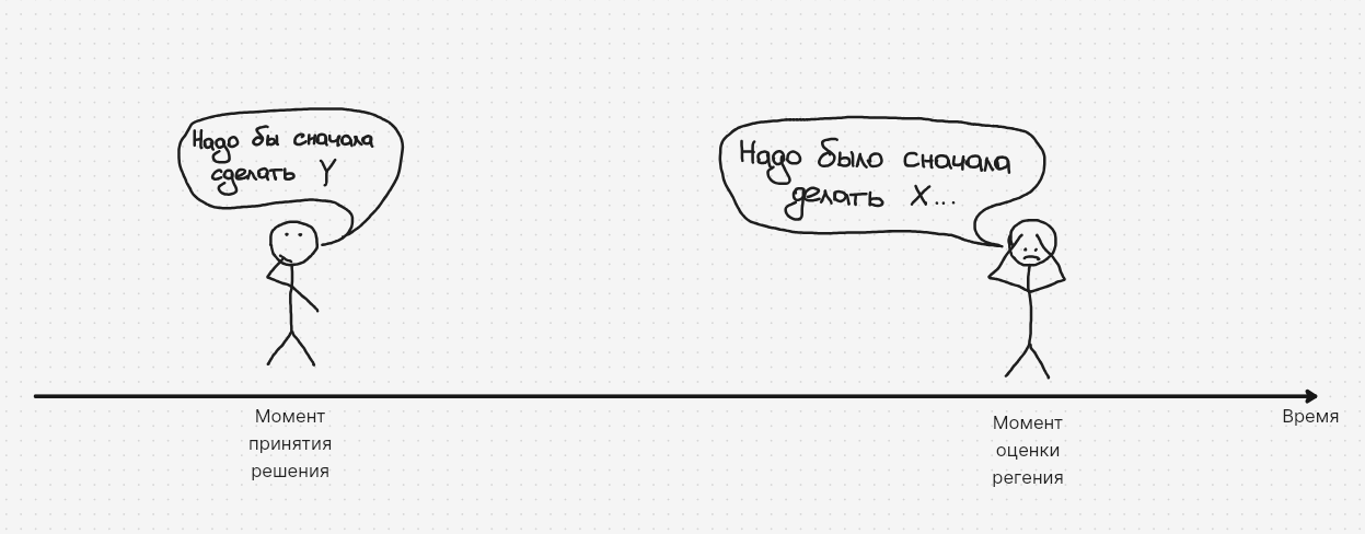 Кстати. Ещё это похоже на ошибку ретроспективной оценки решения. Когда решение оценивают именно через результат, а не через анализ данных существовавших на момент принятия решения. Может по этим данным было принято лучшее решение. Просто не повезло с результатом.