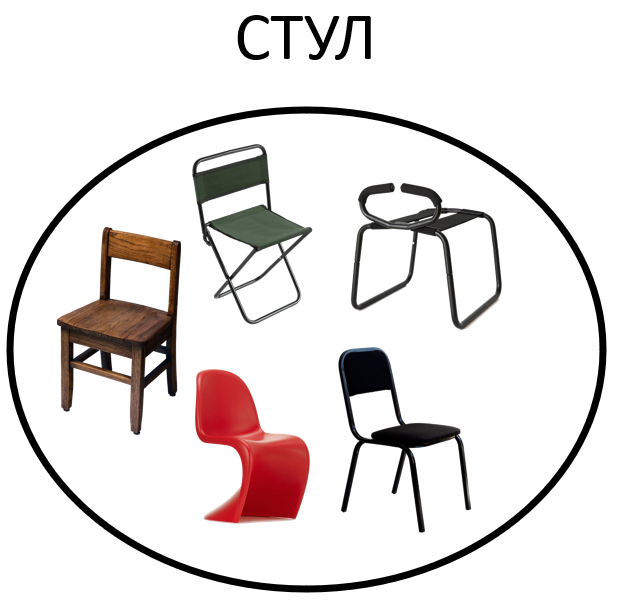 Например, когда кто-то говорит слово «стул», то из нашего опыта мы знаем, что за этим словом может скрываться масса разнообразных объектов: