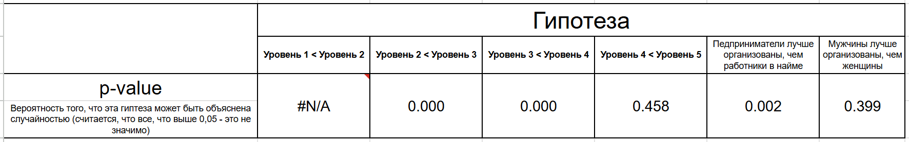 Если кто не знает, что такое p-value - то это вероятность объяснить гипотезу чистой случайностью (см. подробнее тут).