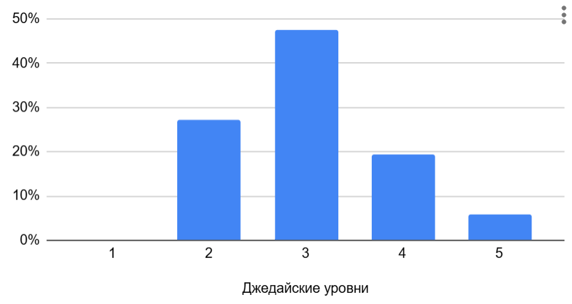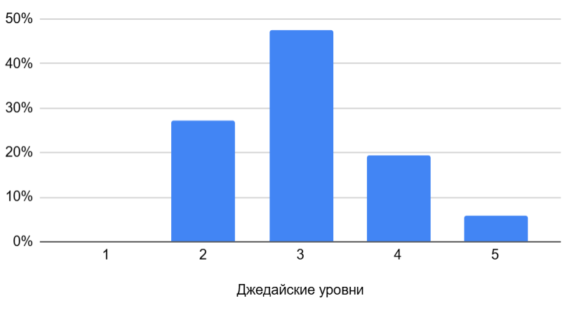 Во-первых, мне не понравилось, что почти никого не было на 1 и 5 уровнях джедайской шкалы, и она фактически превратилась в трех уровневую: