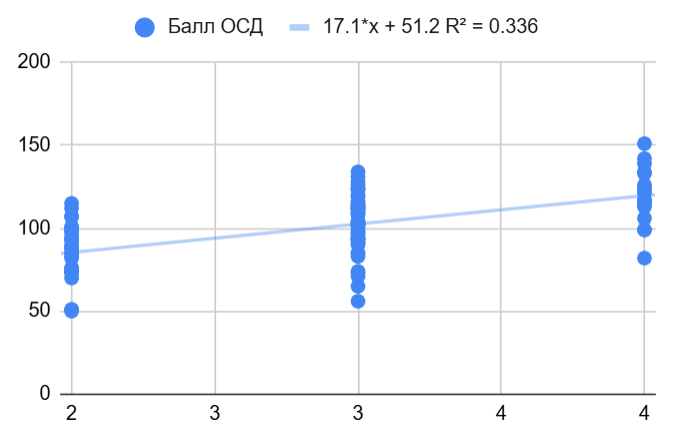 Так же я отфильтровал ОСД-баллы для разных уровней и посчитал t-критерий Стьюдента для гипотез: