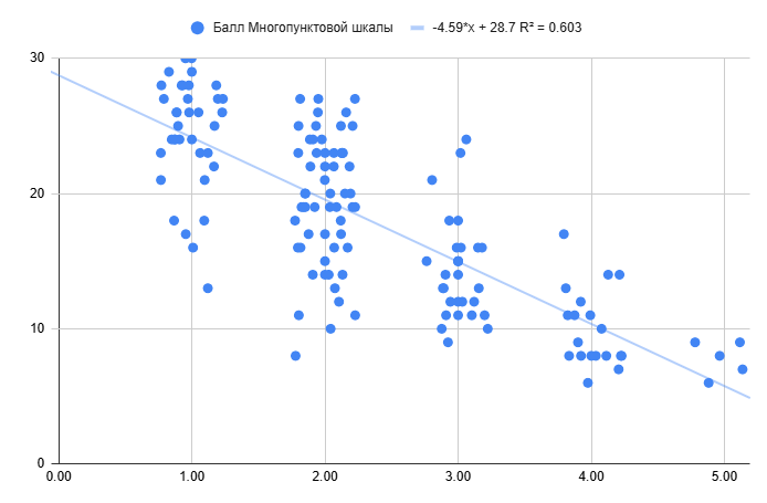 Получилось красиво. Корреляция с однопунктовой шкалой: r=0,76