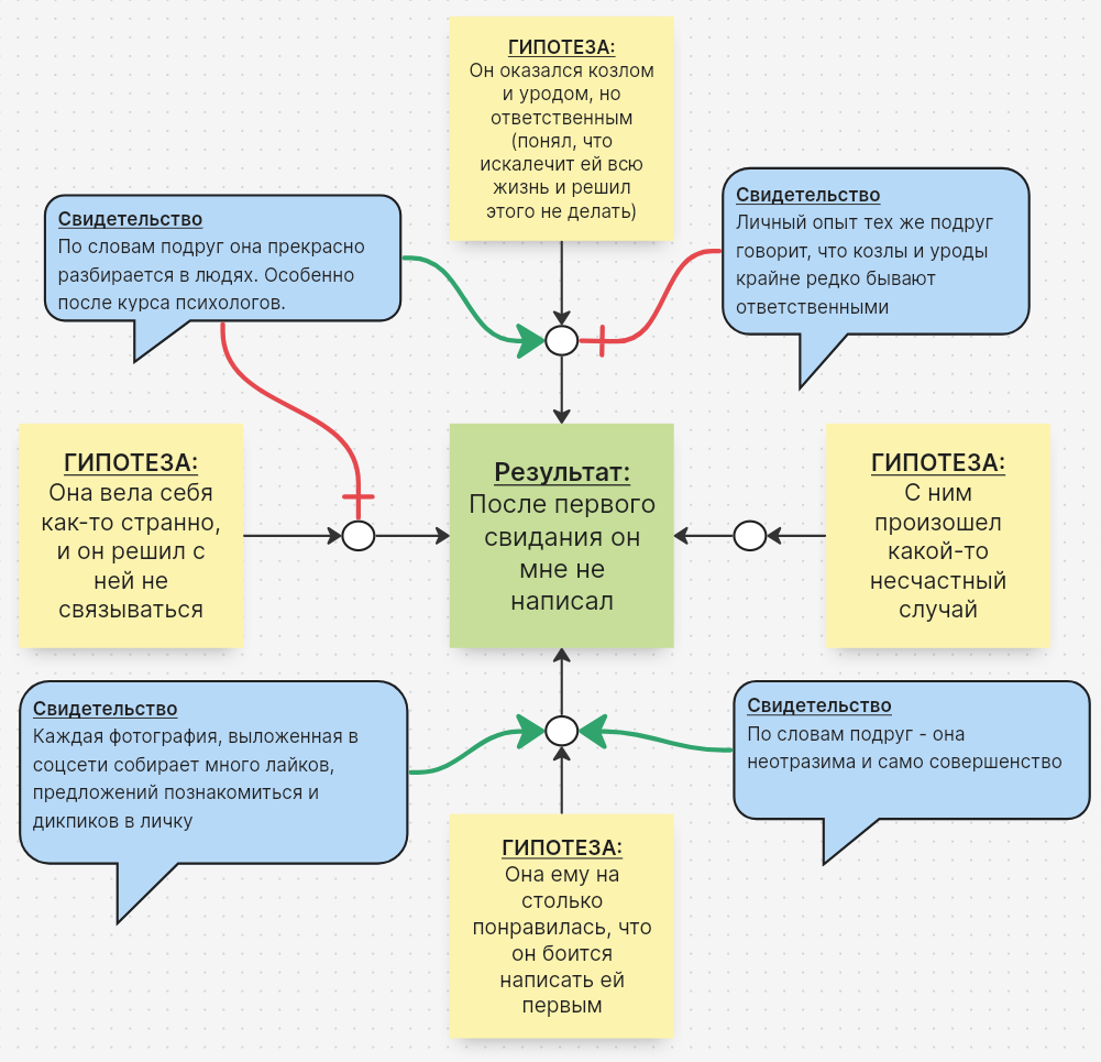 - Подруги говорят, что она прекрасно разбирается в людях (это тоже поддерживает гипотезу 3 и ослабляет гипотезу 4, которую мы и так отбросили как маловероятную),