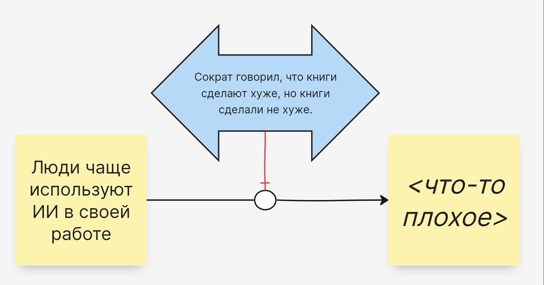 То, что Сократ критиковал письменность, не опровержением связи, что «ИИ приведет к чему-то плохому» и уж тем более не является доказательством, что «и с ИИ всё будет нормально».